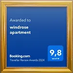 Το Windrose προσελκύει επισκέπτες με τηλεόραση επίπεδης οθόνης με δορυφορικά κανάλια, Wi-Fi και γραφείο εργασίας. Το διαμέρισμα αποτελείται από 2 υπνοδωμάτια και κουζίνα φούρνο μικροκυμάτων, ηλεκτρικό βραστήρα και πλυντήριο ρούχων. Παρέχονται 2 μπάνια με μπανιέρα, ντους και μπιντέ καθώς και σκουφάκια μπάνιου, μεγάλες πετσέτες μπάνιου και παντόφλες.